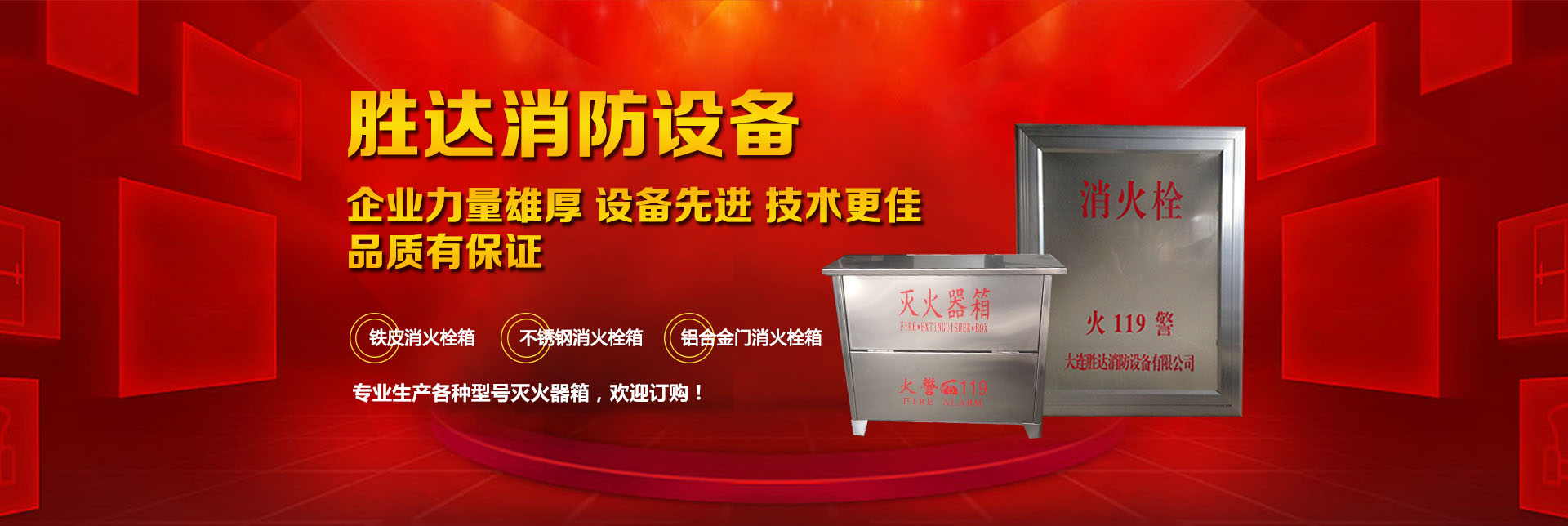大連勝達消防設備有限公司本公司企業力量雄厚、設備先進,生產的所有消防產品均符合國家GB14561—J標準,品質有保證。我公司地理位置優(yōu)越,位于大連市甘井子區西北路847號交通便捷,公司專業生產各種型號滅火器箱、消火栓箱、鐵皮消火栓箱、不銹鋼消火栓箱、鋁合金門消火栓箱。消火栓箱系列產品,全部按照國家標準和行業標準進行生產,并通過國家合格鑒定,得到了國家固定滅火系統和耐火構件質量監(jiān)督檢驗中心的產品認證和產品形式報告書。我們的消火栓箱系列產品具有外形美觀、結構先進、開啟靈活、使用可靠、消火應急燈具標志清晰、光色好、功耗低、使用壽命長、安裝使用簡便,可廣泛應用于高層建筑和工業等一些公關場所使用。